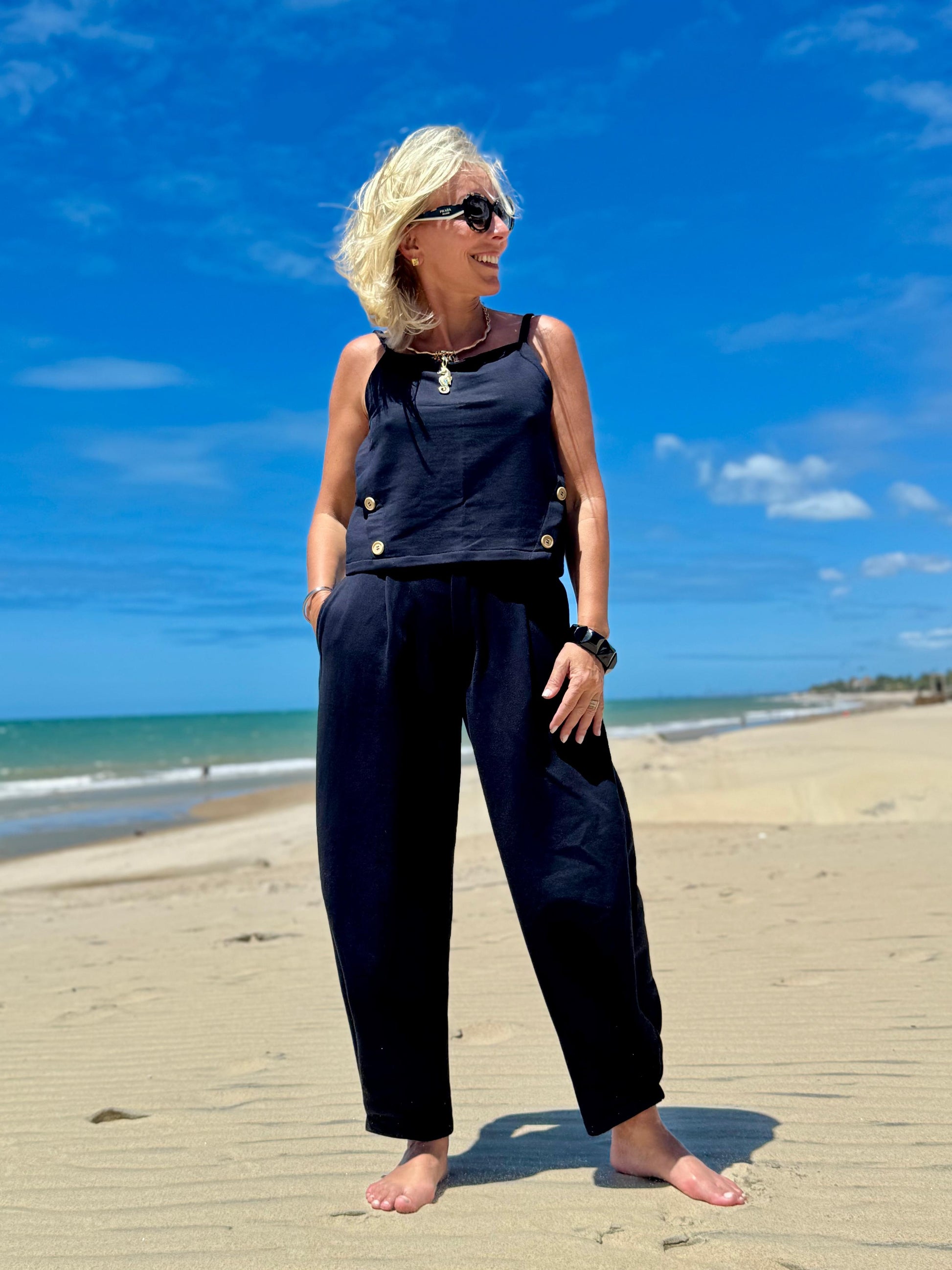 Feita em moletinho, a Calça Bombe oferece conforto e estilo urbano em uma única peça.