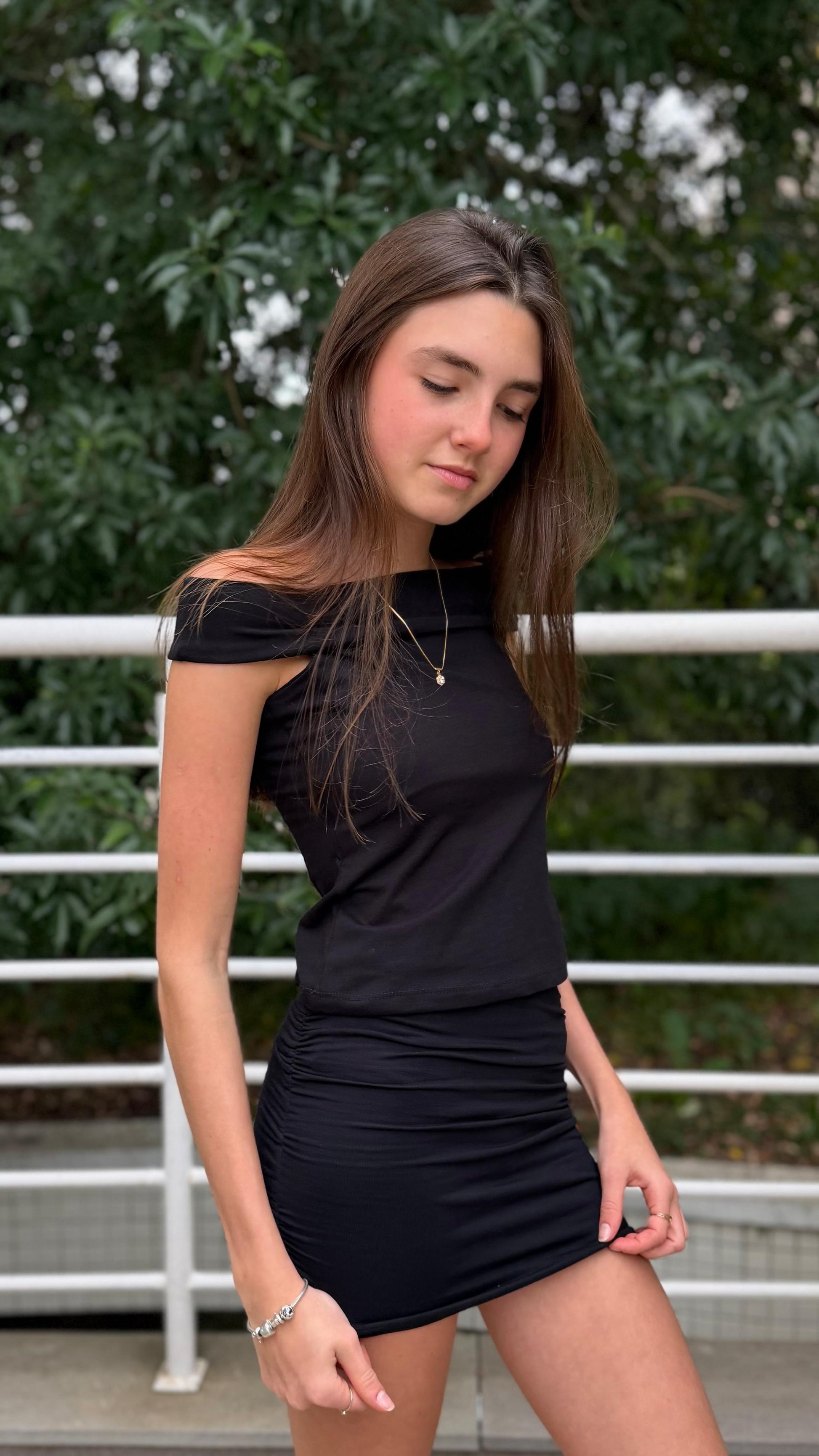 Feito em tecido de alta elasticidade, tem caimento ajustado, toque macio e decote ombro a ombro — perfeito para um look moderno e confortável.